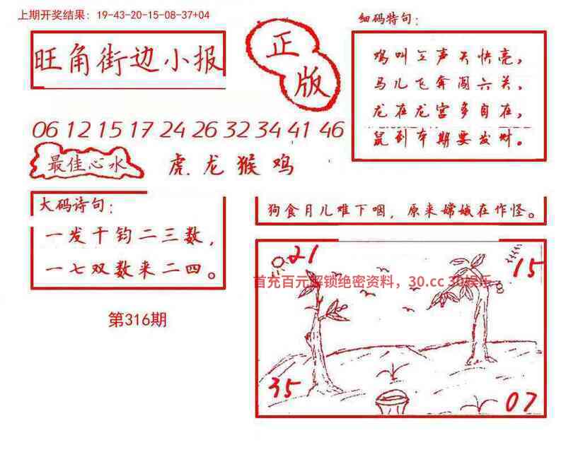 | 316期 | 虎 | 绿波双 | 7尾 | 开马24 |
